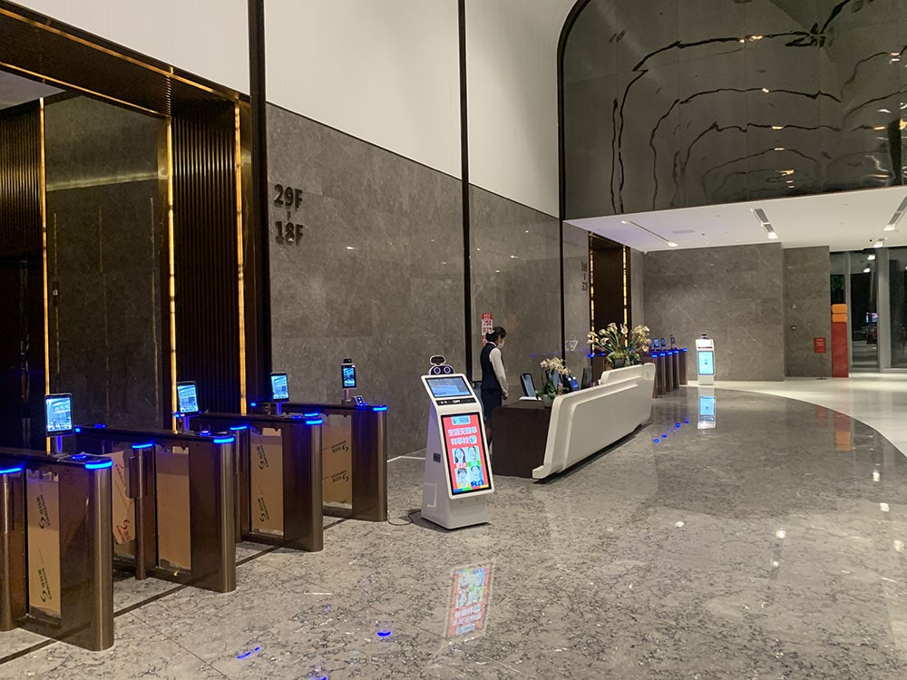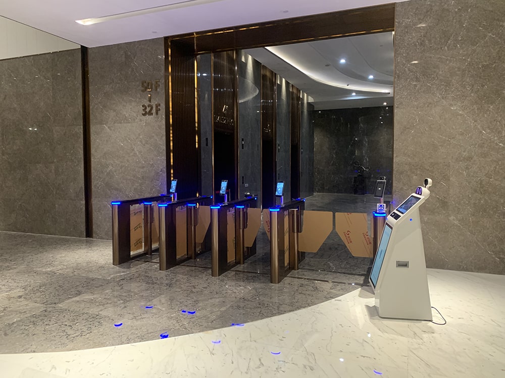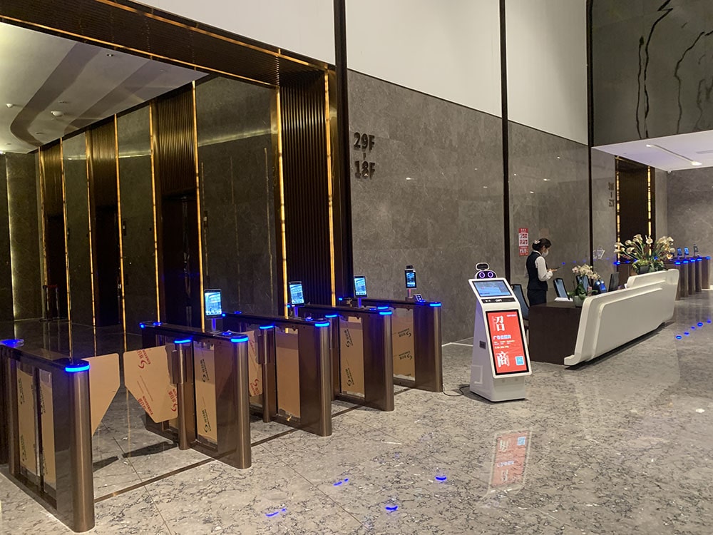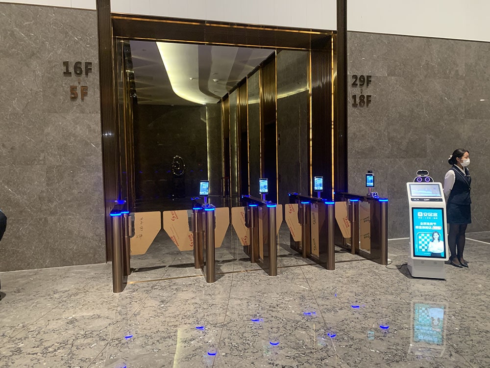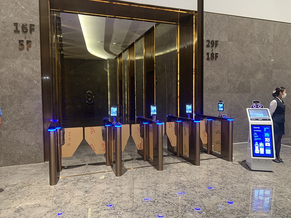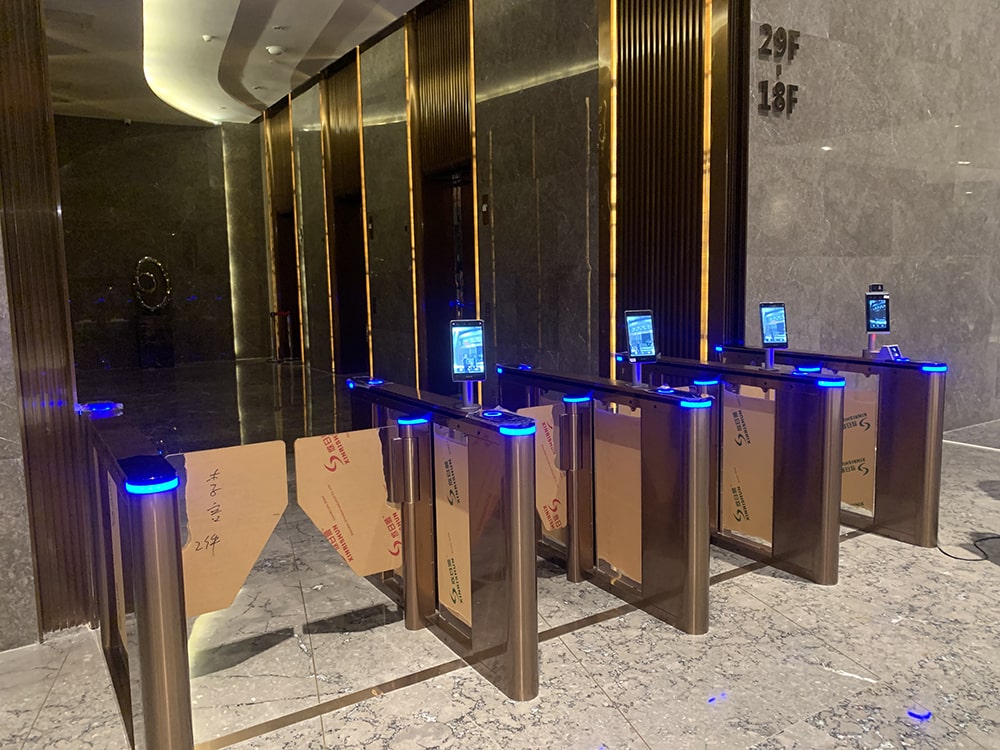 安装设备:浪兴速通门503款+定制电镀香槟金+人脸识别访客系统