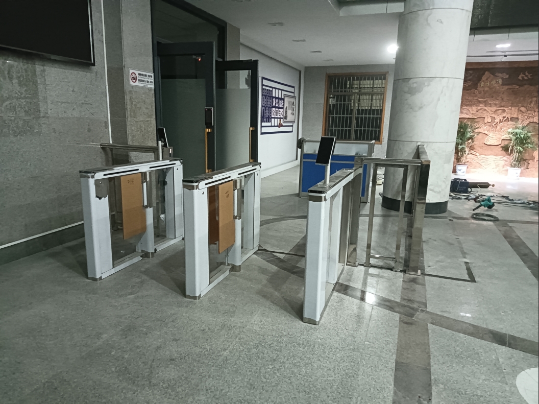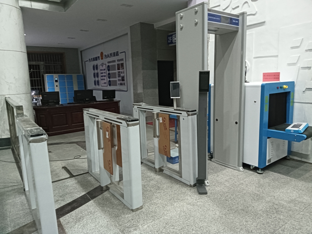 安装设备:豪华速通门+人脸识别设备+访客系统+安检设备