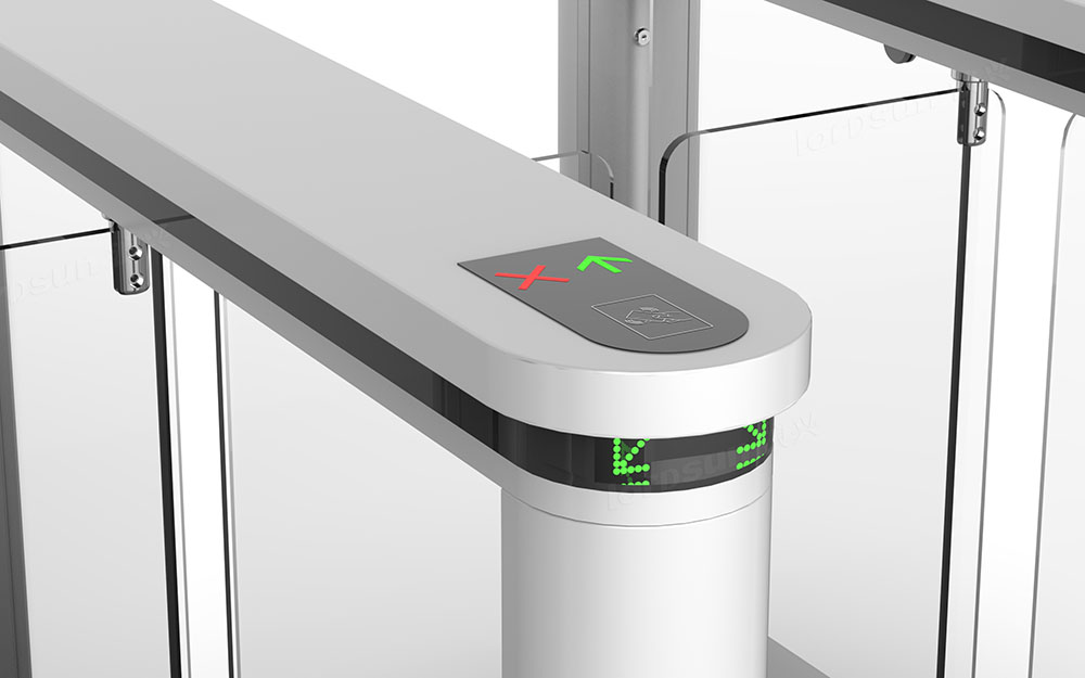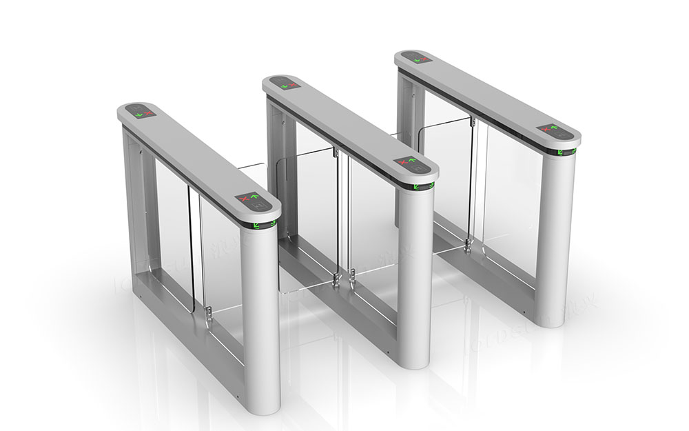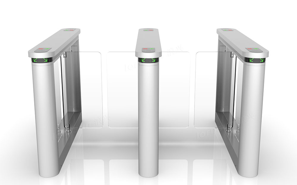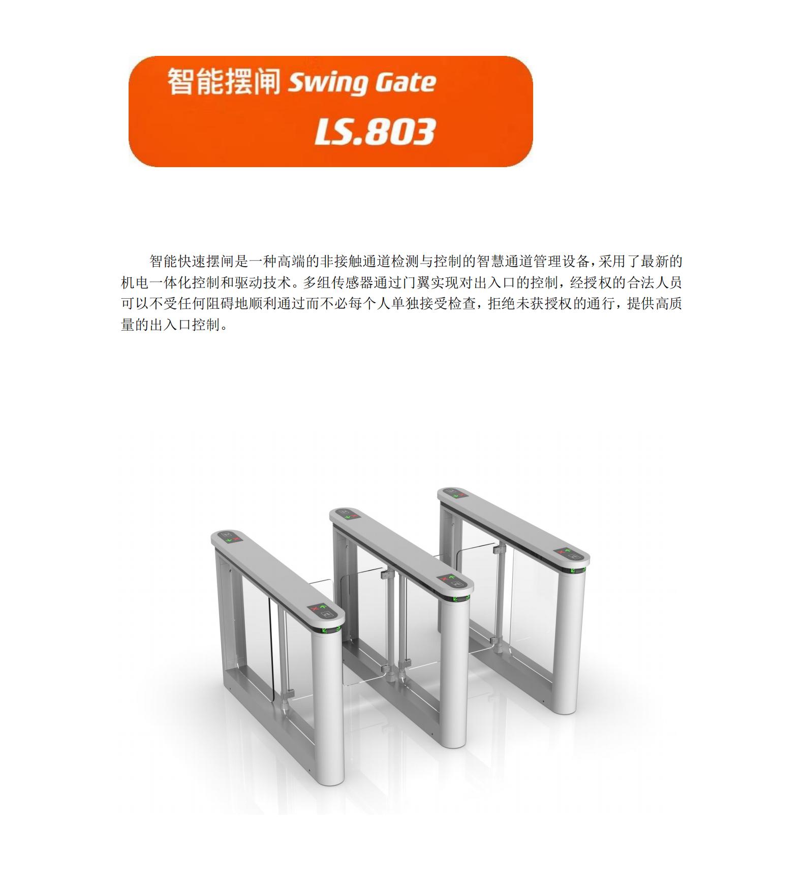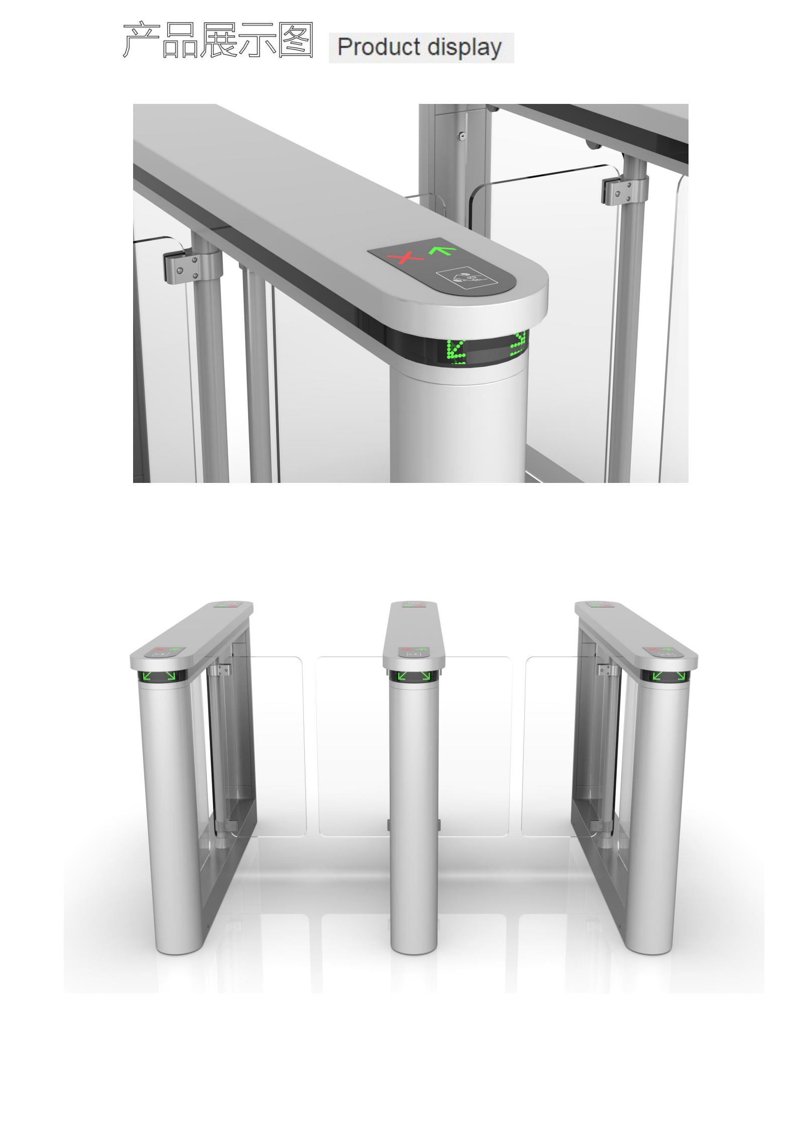 摆闸,在轨道交通行业一般称为拍打门,其拦阻体(闸摆)的形态是具有一定面积的平面,垂直于地面,通过旋转摆动实现拦阻和放行。拦阻体的材质常用不锈钢、有机玻璃、钢化玻璃,有的还采用金属板外包特殊的柔性材料(减少撞击行人的伤害)。