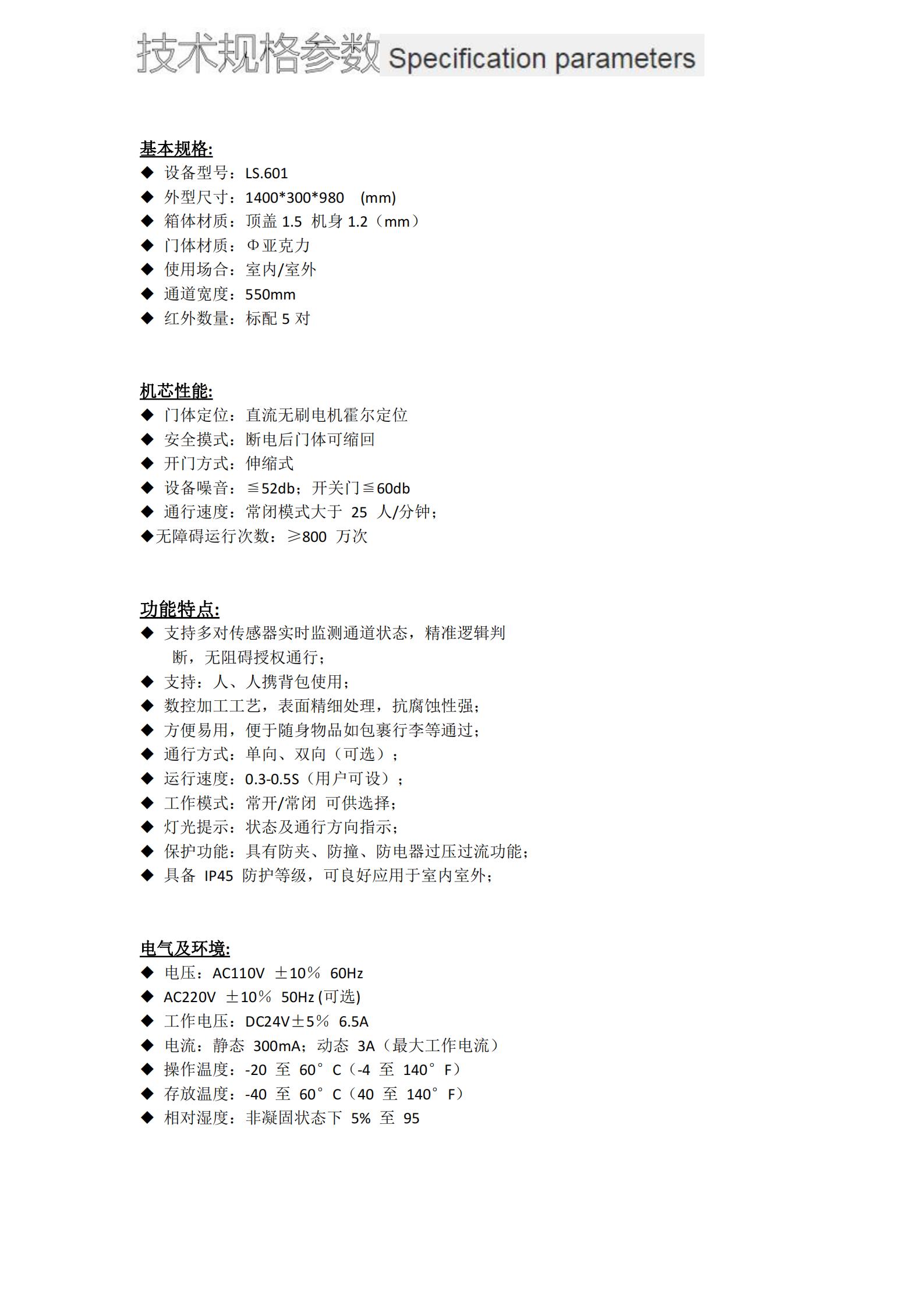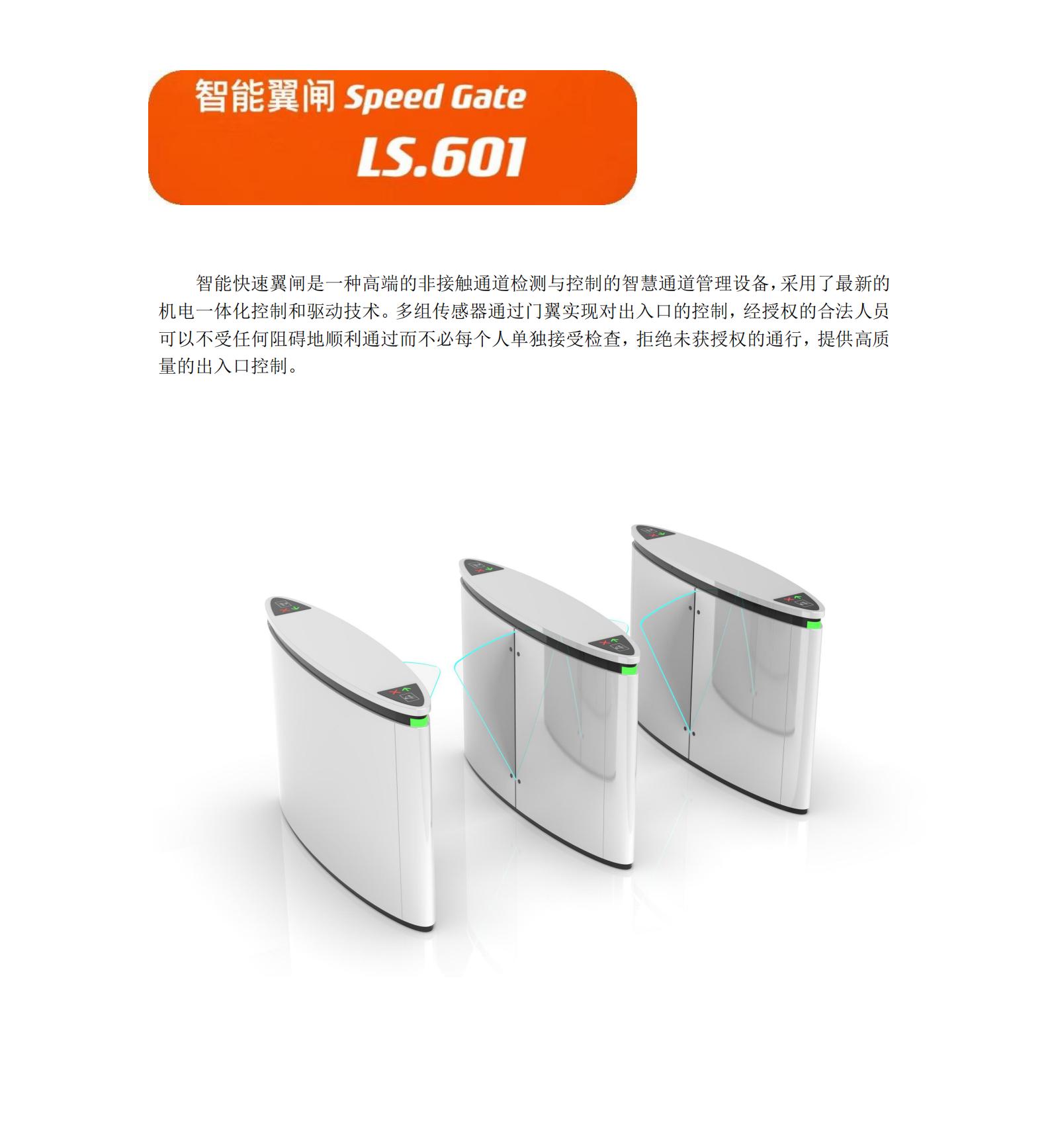 翼闸,为通道管理设备之一,主要用于人行通道管理;具有快速打开、安全、方便等特点,是行人高频率出入通道的理想管理疏导设备;现已广泛应用于机场、地铁站、车站、码头、景点、公园、学生宿舍、单位人行通道等,可以配合智能卡实现脱机型售票管理系统功能、形成人员进出的无人值守管理。