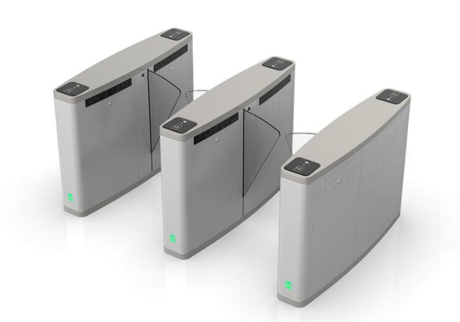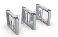 翼闸,在轨道交通行业一般称为剪式门,国外很多地方也称为速通门,其拦阻体(闸翼)一般是扇形平面,垂直于地面,通过伸缩实现拦阻和放行。拦阻体的材质常用有机玻璃、钢化玻璃,有的还采用金属板外包特殊的柔性材料(减少撞击行人的伤害)。机芯控制方式只有全自动式。形态也只有桥式,行人检测模块功能较强。